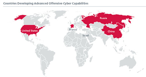 The report found that politically motivated cyberattacks have increased and five countries, including the United States, Russia, France, Israel and China, are now armed with cyberweapons.